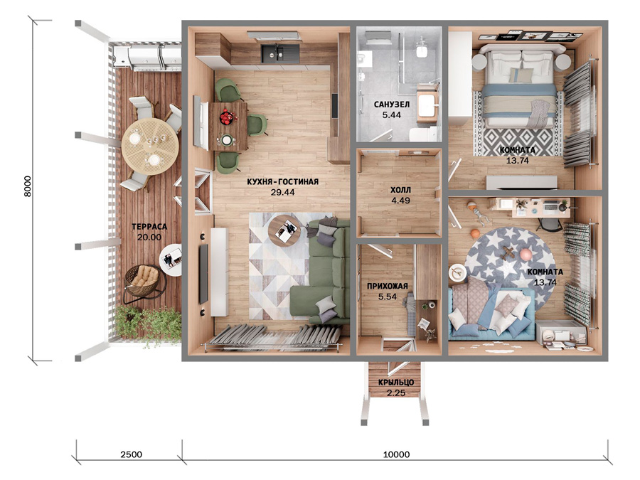 Нордик 8 x 10 (две спальни)